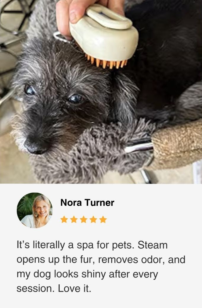 After a quick steam brush and 10 minutes on the mat, our dog is relaxed and sleepy. Less hair on the sofa and no zoomies before bed.