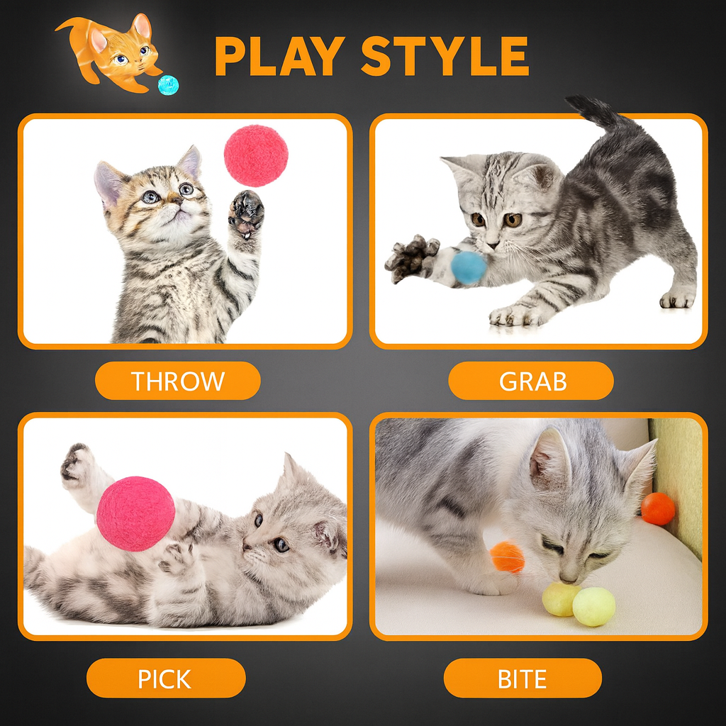 🦷 Bite - The plush balls are gentle and safe, allowing your cat to bite and chew freely, satisfying their natural urge without damaging their teeth.